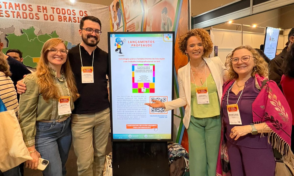 Durante o evento, os docentes celebraram o lançamento do livro “Estratégias para o Fortalecimento da Educação e do Trabalho Interprofissional no SUS”, que reúne experiências de diferentes instituições brasileiras. A obra conta com o capítulo 8 “Caminhos para a Educação Interprofissional na Atenção Primária à Saúde: estratégias de um estágio curricular”, escrito pelos professores responsáveis pelo estágio interprofissional do CeFIS e pela coordenadora administrativa do Centro. (Acesse aqui a obra completa).